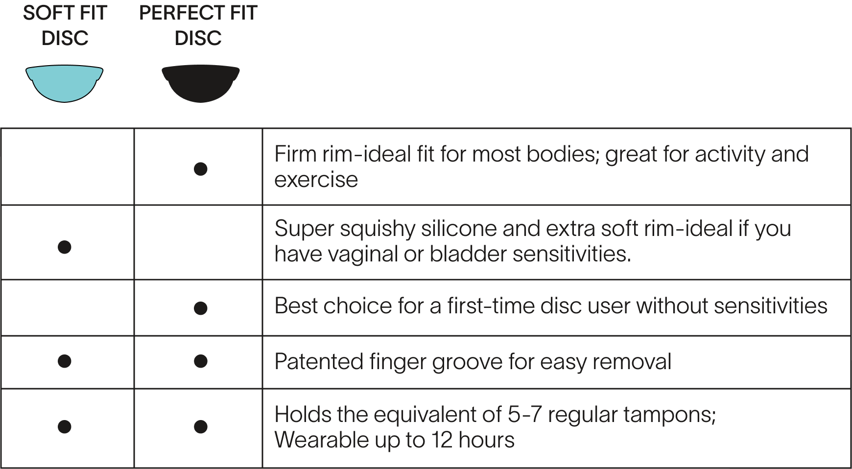 Here’s a breakdown of the Soft Fit vs the Perfect Fit Disc, so you can choose what’s right for you: